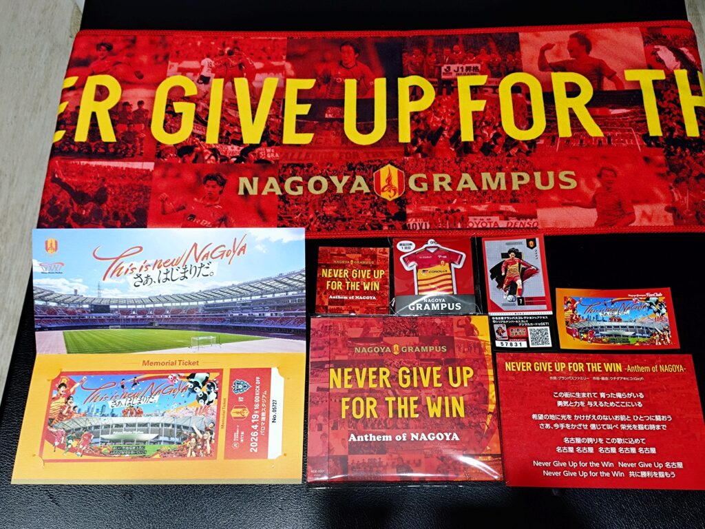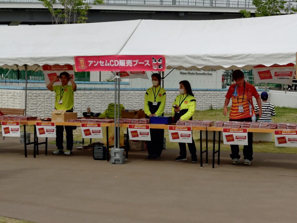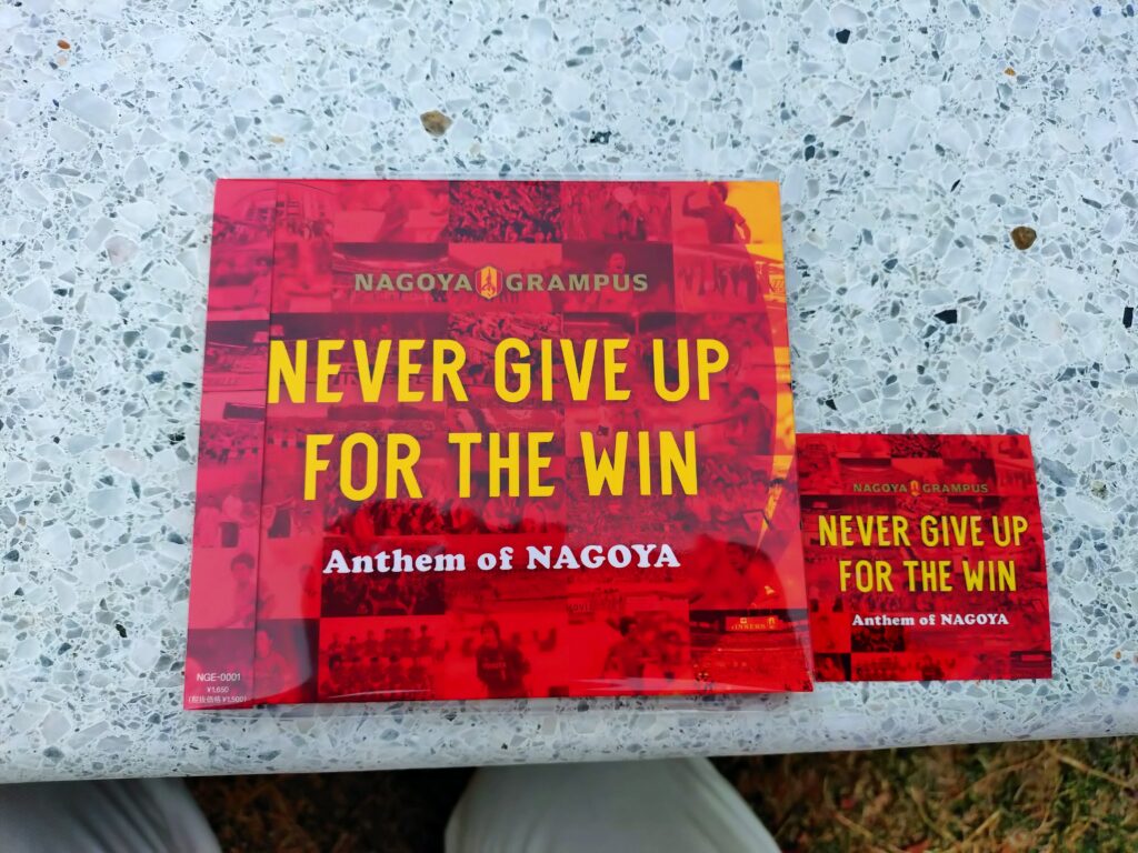 この日に合わせて発表された新アンセム (試合前や選手入場の際に流れる、スタジアムの一体感を高める賛歌・応援曲)、「Never Give Up for the Win」のCD販売ブースを見つけたので購入。