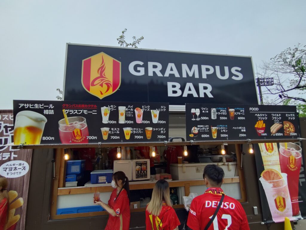 観戦のお供にと選んだスタグルは、K’s Pitの「グランパスバーガー」と、GRAMPUS BARの「グラスプモーニ」。