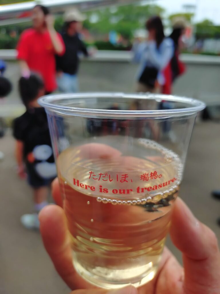 広場の一角では、振る舞い酒を配っているサポーター有志の方々が。